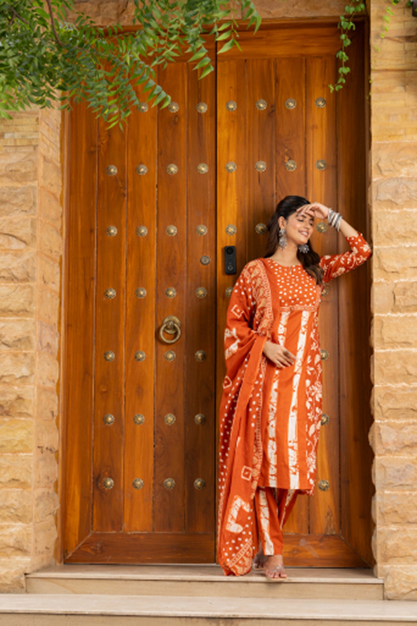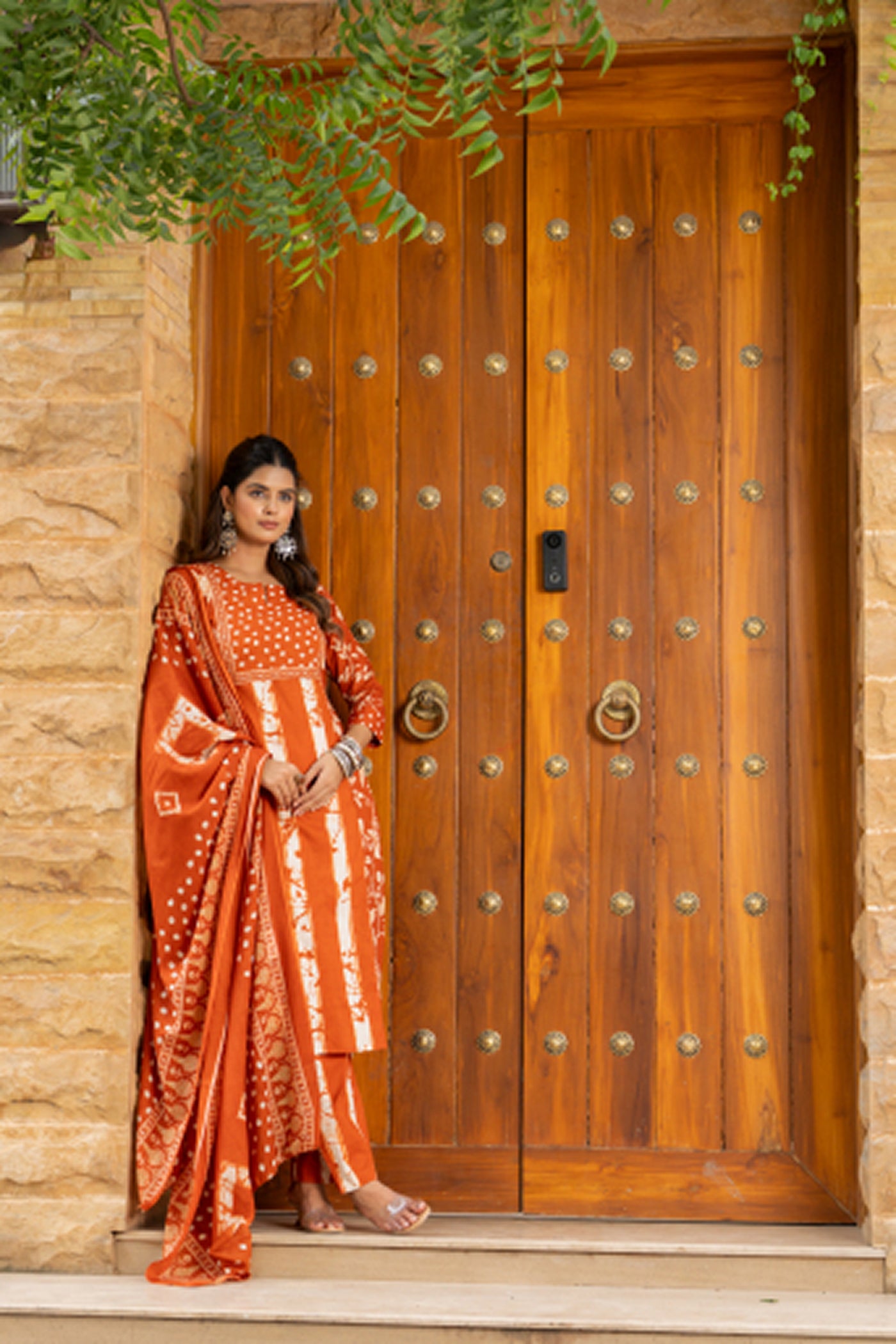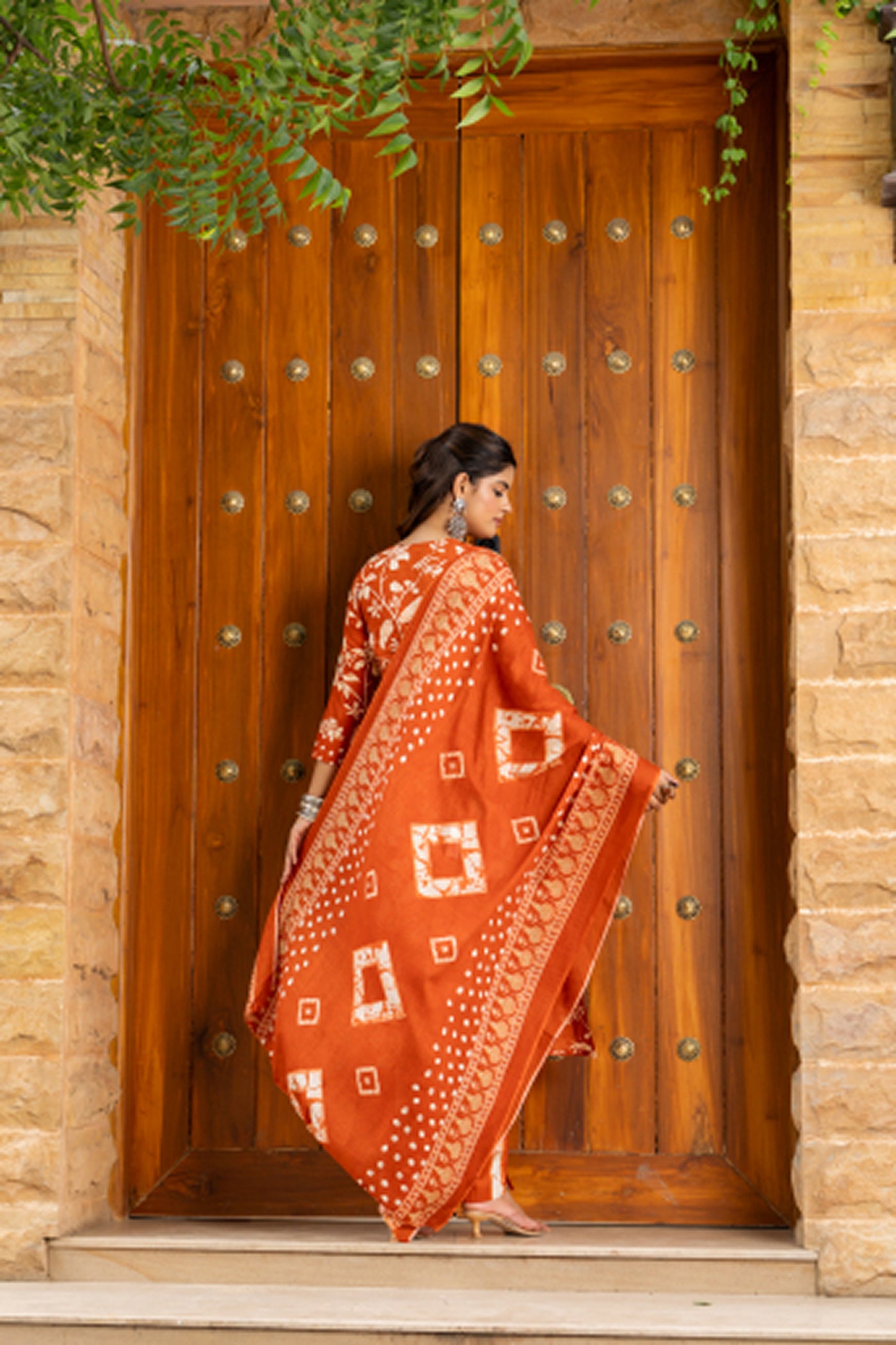 - Brighten your day in this orange printed cotton kurti set with pants and dupatta. Crafted from soft, breathable fabric, it blends comfort and elegance — perfect for office hours, casual brunches, or festive get-togethers.
