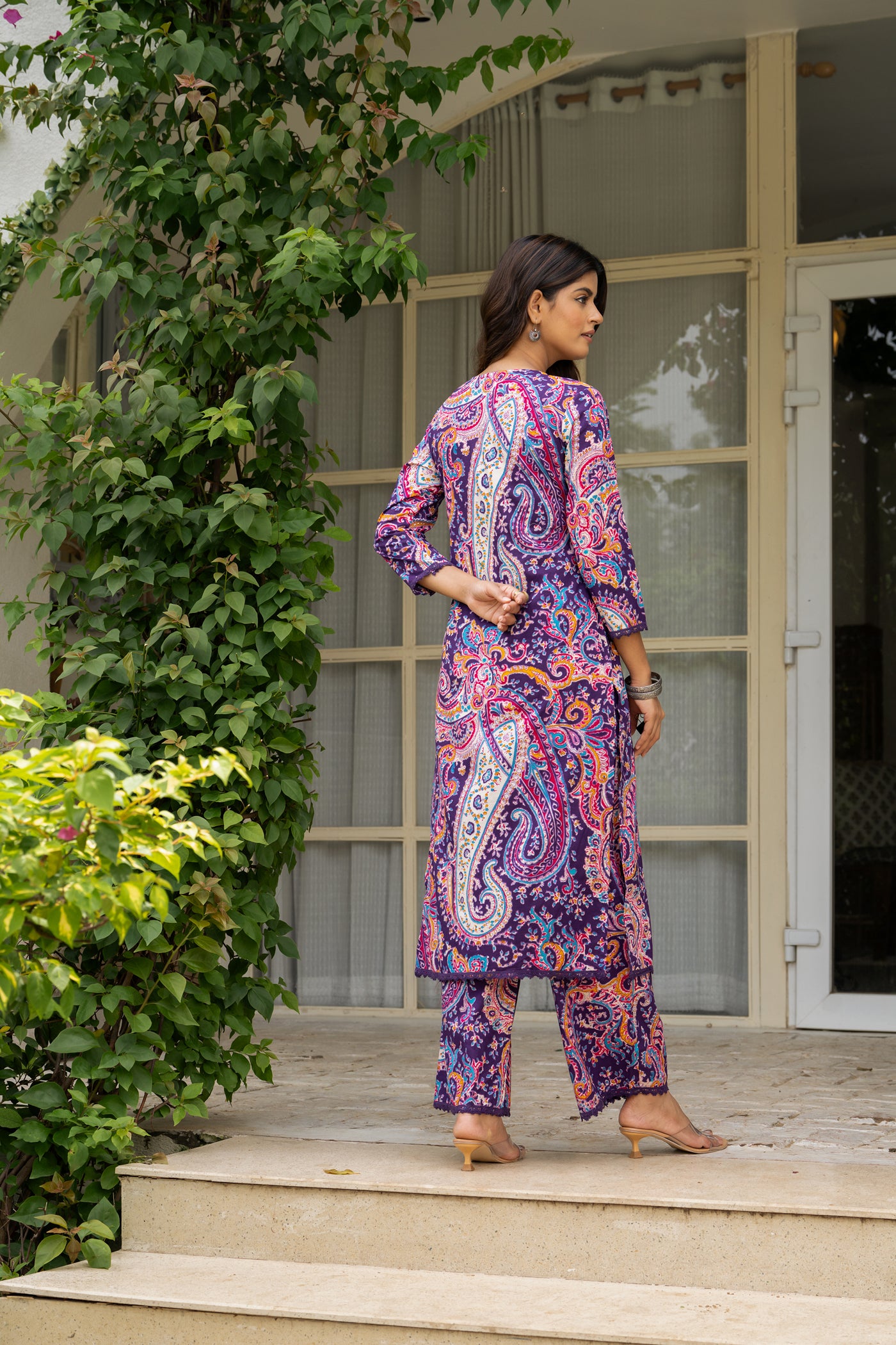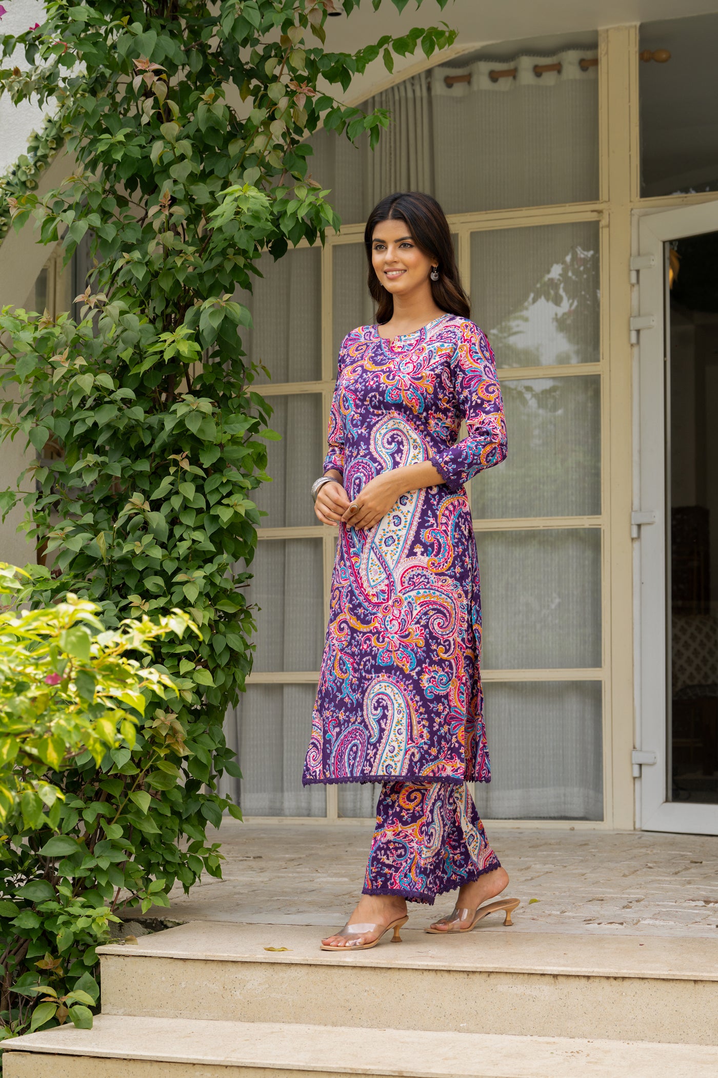 - Add a pop of charm to your wardrobe with this purple cotton kurti set, detailed with subtle prints and paired with matching pants and dupatta. Light, breathable, and versatile — perfect for office wear, weekend brunches, or casual get-togethers.