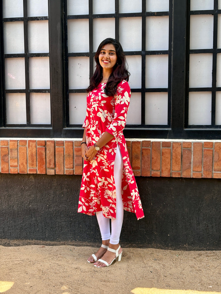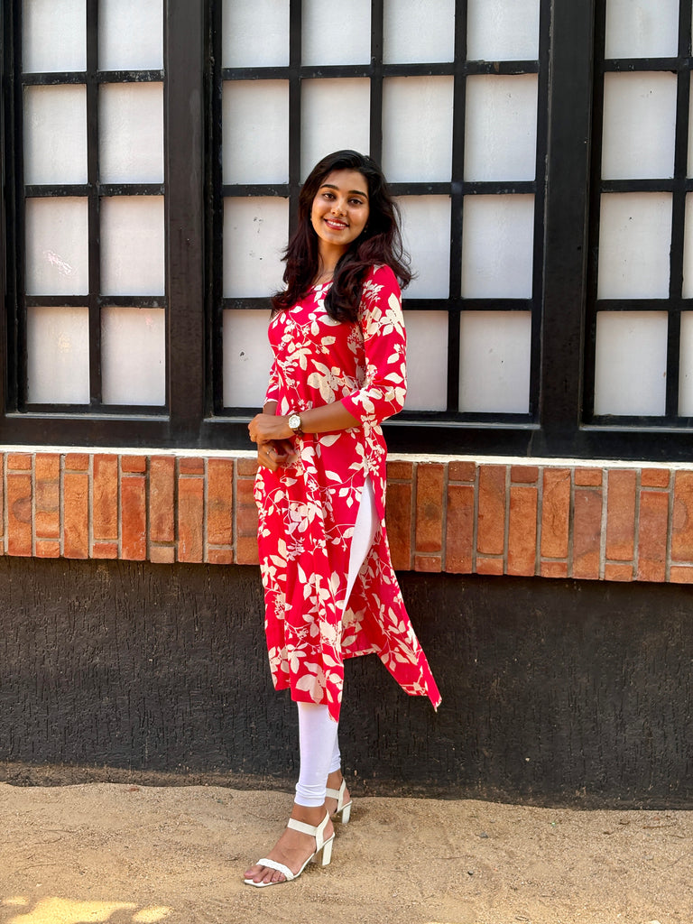 - Stay stylish and comfortable in this Pink Linen Cotton printed kurti. Designed with soft, breathable fabric and elegant all-over prints, it’s ideal for work, casual outings. Pair it with leggings or palazzos for a timeless ethnic look.